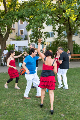 Die fortgeschrittenen Rueda, ehem. Showgruppe, ist Teil vom Salsatanzclub Zürich und trainiert wöchentlich vor der öffentlichen Rueda.